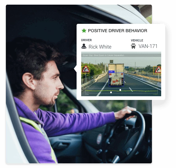 Get driver buy-in with the most accurate and transparent driver safety program. Based on Video AI you can create a balanced program that rewards positive actions and communicates areas for improvement, all backed by video evidence recorded on the smart dashcam.